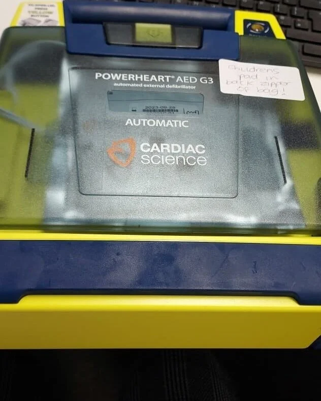 The club is fully equipped with an automatic defibrillator, which is used to restart a patient’s heart in the event of a sudden cardiac arrest.